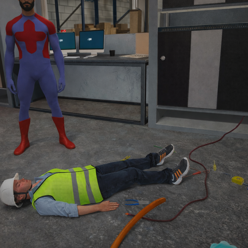 Aplikacja VR nauka postępowania w sytuacjach nagłych Szkolenie w wirtualnej rzeczywistości, zgodne z wytycznymi ERC i AHA, stworzone dla firm, szkół i instytucji, które chcą uczyć skutecznie i angażując Umów się