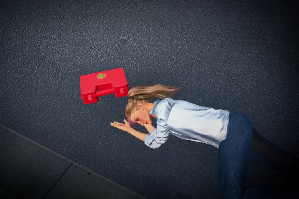 vr app lernen, wie man mit einer bewusstlosen atmenden Person umgeht Virtual-Reality-Training, konform mit den ERC- und AHA-Richtlinien, entwickelt für Unternehmen, Schulen und Institutionen, die