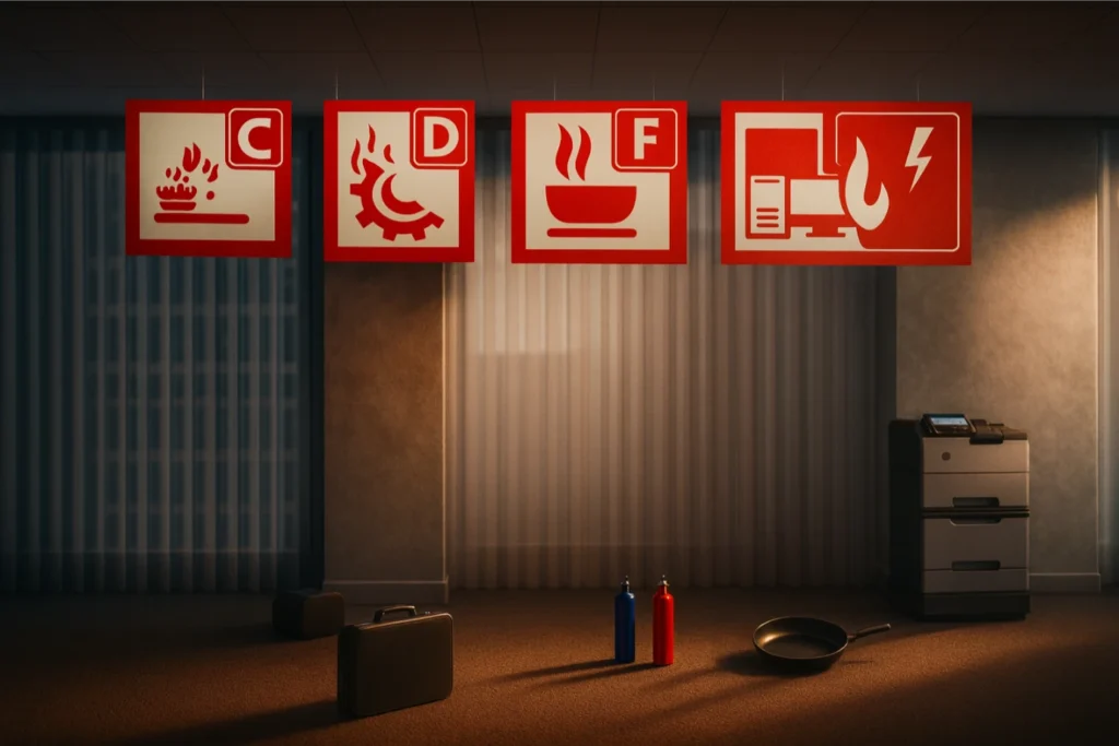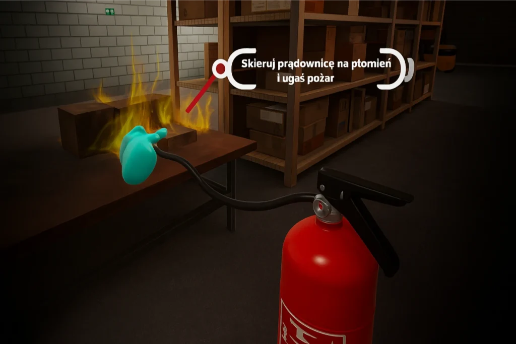 VR app learning how to classify fires and select extinguishing methods An interactive training scenario that teaches firefighting techniques, material allocation, and the use of